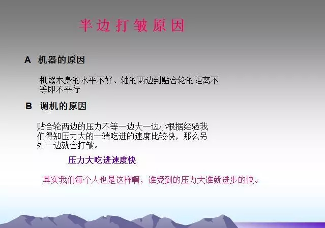 輥緊固螺釘松動原因造成各輥的平行狀態被破壞,此時會出現打皺現象。這種情況下,只要及時調整并緊固好即可。
